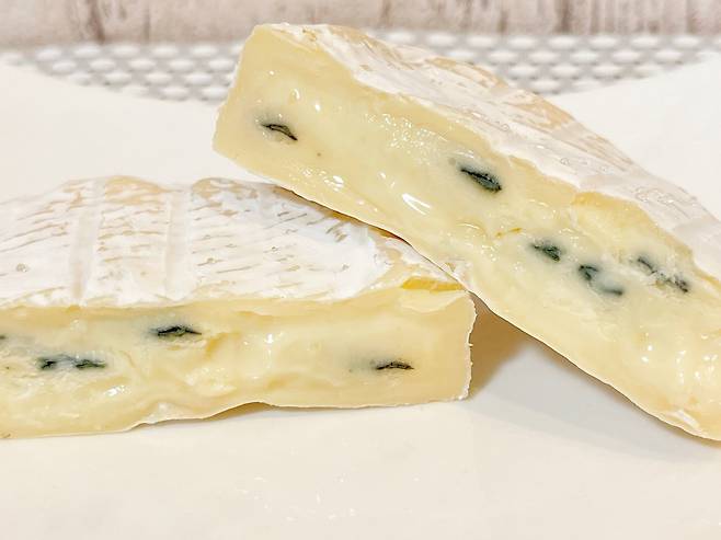 블루 치즈는 내부에 푸른곰팡이가 퍼져 있는 것이 특징이다.
