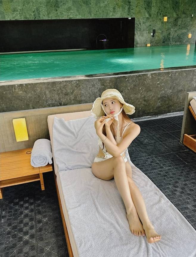 늘씬한 각선미와 군살 없는 실루엣이 비치 체어 위에서 더욱 돋보이며 시선을 압도했습니다.