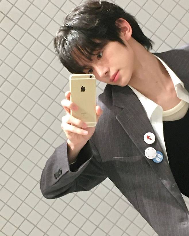 헤어 스타일은 자연스러운 볼륨감을 살린 레이어드 컷으로, 전체적으로는 내추럴하면서도 소년미 넘치는 무드를 자아낸다. 어떤 각도에서도 흐트러짐 없이 셀카를 소화한 그의 모습은, 아이돌 셀카의 정석을 보여주는 듯하다.