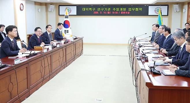 시는 16일 대덕특구의 열린 연구 환경 조성과 지역사회와 교류 확대를 위해 국가과학기술연구회·대덕특구 12개 연구기관과 업무협약을 체결했다.