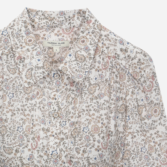 써스데이 아일랜드 특유의 감성적인 분위기와 더불어 보더 믹스 디자인이 특징인데, 이는 톤온톤 스트라이프와 다양한 소재의 조화로 세련된 빈티지 무드를 완성해준다.