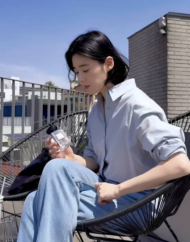 소매를 롤업 한 셔츠 디테일, 그리고 무심한 듯 잡힌 포즈는 그녀만의 여유로운 매력을 한층 배가시켰습니다.