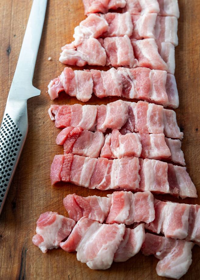 1. 삼겹살은 얇게 썰고, 양파는 채 썬다.