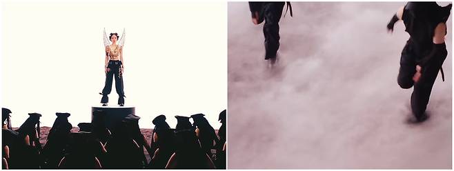 또한, 뮤직비디오에 등장하는 땅, 물, 불, 바람과 같은 자연 요소들도 단순한 배경이 아니라, 제니 자신과 동일한 존재라고 해석할 수 있습니다. 불교에서 만물은 결국 하나로 연결되어 있다는 사상을 바탕으로 본다면, 제니는 곧 땅이자 물이며, 불이자 바람인 존재라는 것이죠. 즉, 그녀가 보여주는 다양한 모습들도 결국 모두 연결된 하나이며, 제니라는 본질에서 비롯된 것입니다.