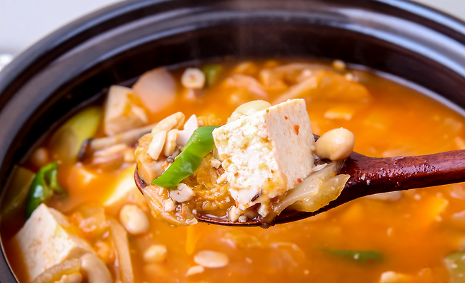 콩비지찌개는 흰콩을 갈아 넣어 만드는 대표적인 집밥 메뉴입니다. 흰콩에는 식물성 단백질과 식이섬유가 풍부하게 들어 있어 포만감이 오래가고, 된장의 아미노산과 만나면 단백질의 질과 양이 모두 업그레이드돼요. 이 조합은 근육 건강이나 면역력 강화, 장 건강에도 긍정적인 영향을 줍니다. 다이어트 중이거나 건강식을 찾는 분들에게 특히 좋은 선택이 될 수 있습니다.