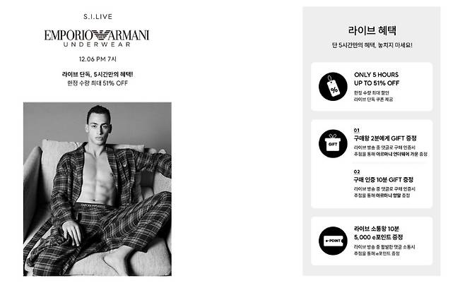 아르마니 언더웨어 가운 제공(2인), 아르마니 양말 증정(10인)