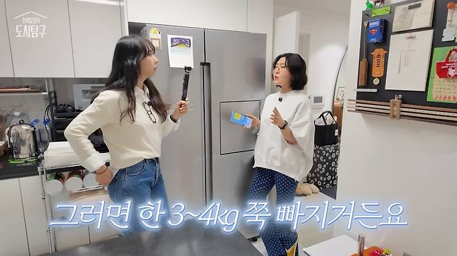 집 소개를 이어가며 주방에 있는 냉장고를 열기 전 한혜연은 자신의 다이어트 식단을 공개했다.
