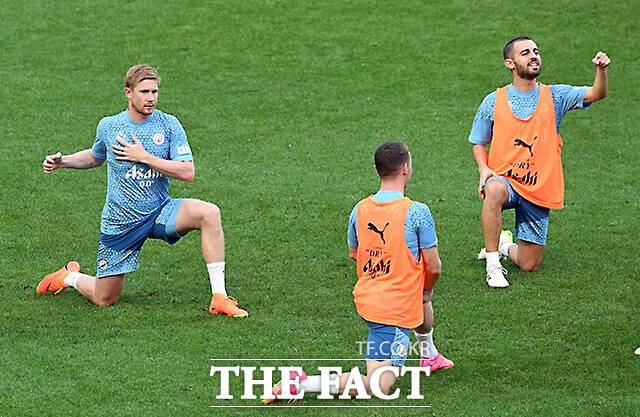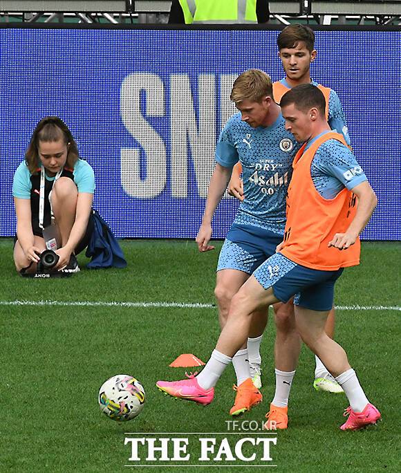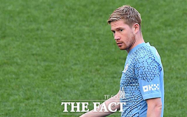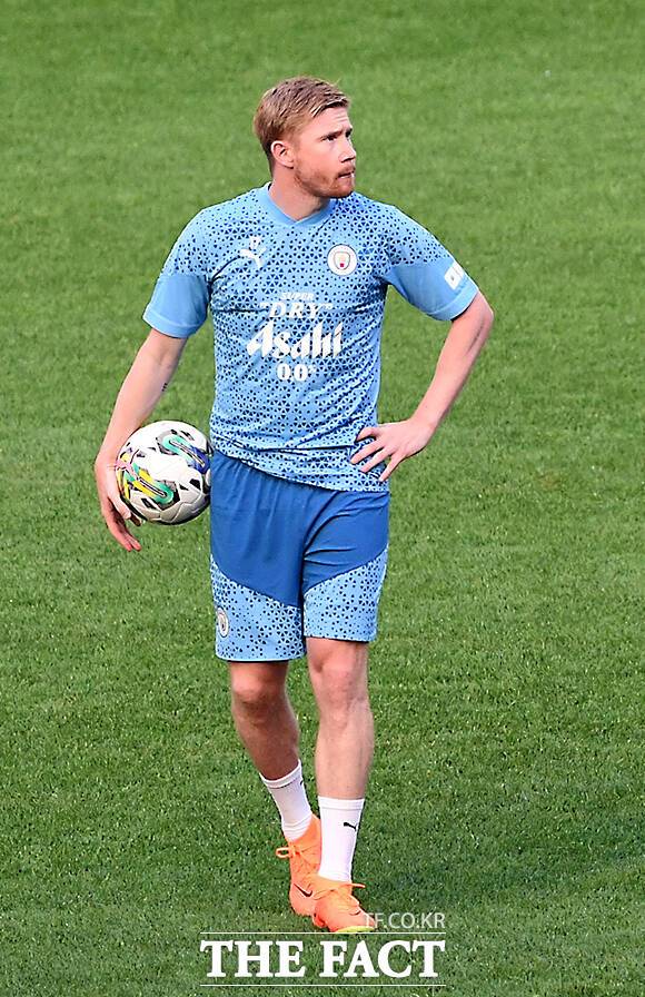 [더팩트ㅣ서울월드컵경기장=임영무 기자] 맨체스터 시티 케빈 데 브라위너가 29일 오후 서울 마포구 서울월드컵경기장에서 열린 오픈트레이닝에서 몸을 풀고 있다.