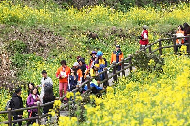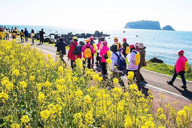 제주의 봄을 대표하는 축제 중 하나인 '서귀포 유채꽃 국제걷기대회'가 올해도 어김없이 열린다.