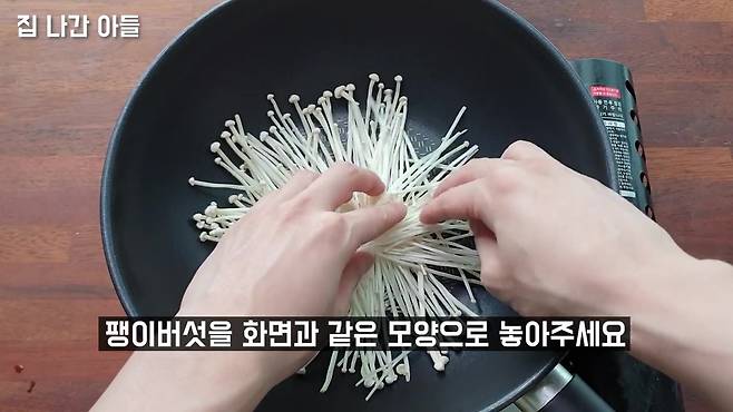 팬에 기름을 두르고 버섯을 예쁜 모양으로 배열합니다.