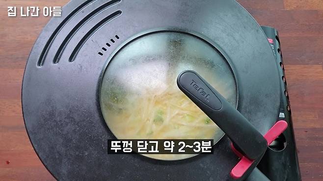 뚜껑을 덮고 중약불에서 익힌 후, 접시를 덮고 뒤집어 반대편도 1분 더 익힙니다.