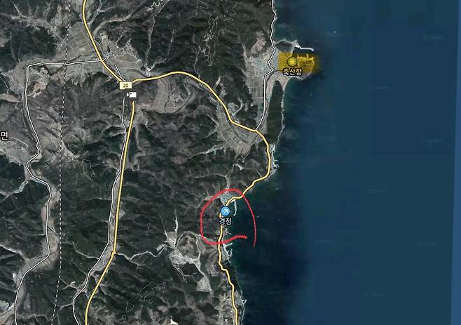 경정 2리는 더 북쪽에 위치해 있습니다.