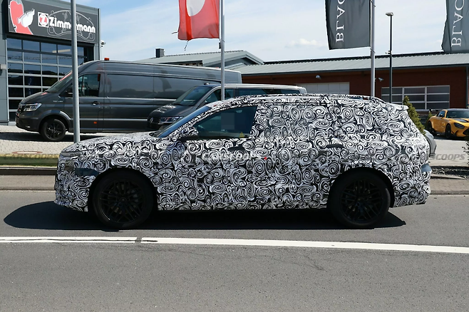 하단부에는 곡선을 살린 차체 패널과 머스탱 마하-E 스타일의 도어 핸들, 넓은 유리창이 적용됐으며, 콘티넨탈 스포츠콘택트 타이어를 장착한 대형 휠도 확인된다.