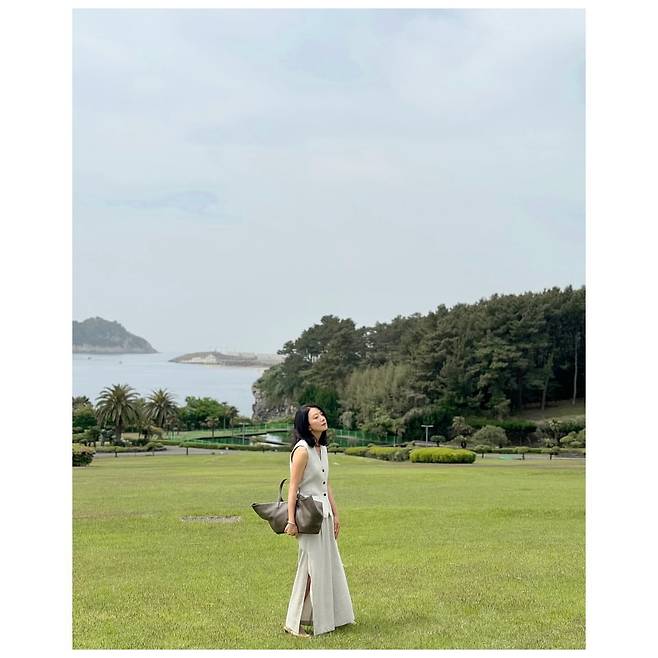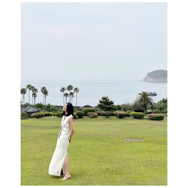 아름다운 자연에서 올화이트 룩을 입어 더욱 빛나는 외모를 보여줬습니다.