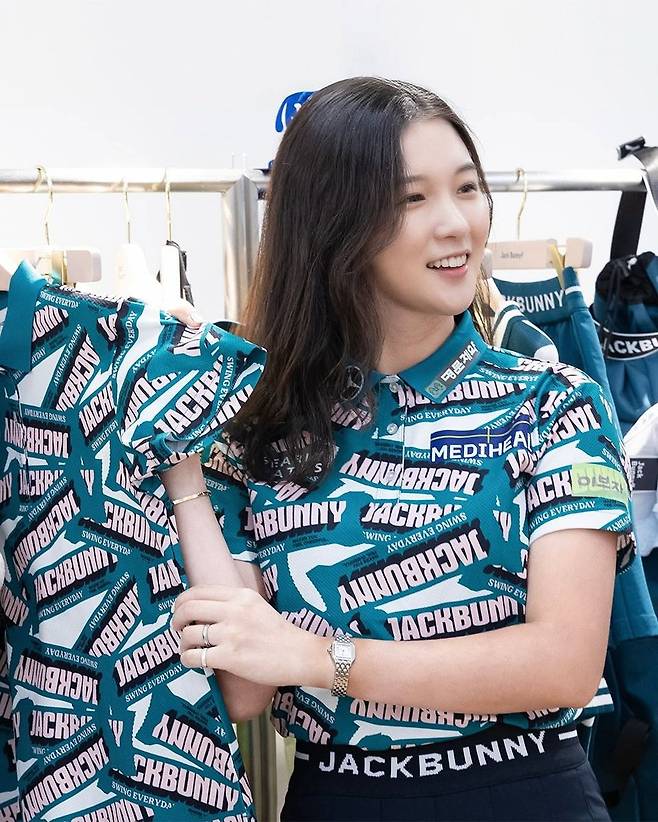 또한, 셔츠의 카라에는 소속팀 패치와 후원사 로고가 함께해 선수로서의 정체성을 놓치지 않았으며, 심플한 메탈 시계를 매치해 깔끔하고 전문적인 골퍼의 이미지를 완성했다. 작은 디테일 하나까지 놓치지 않은 스타일링은 그녀의 프로페셔널한 면모를 고스란히 드러낸다.