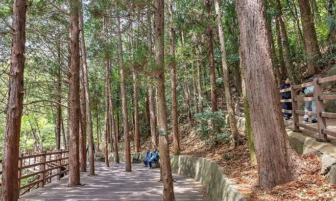 계단길과 데크길 두 가지 코스가 있어 체력에 맞게 선택할 수 있는 것도 장점이다. 숲길에 들어서면 금세 깊은 산속에 들어온 듯한 느낌을 주며, 녹음을 가득 담은 풍경은 도심 속에서 쉽게 만날 수 없는 힐링을 선사한다.