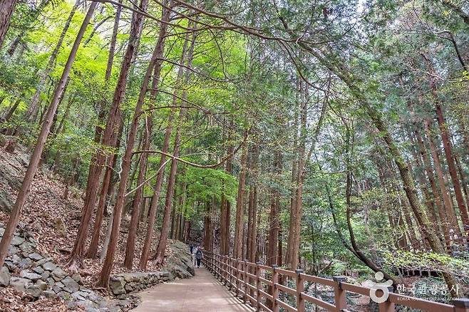 수원지를 둘러싼 2.5~3㎞의 순환 산책로는 사계절 내내 푸르름이 가득하다. 삼나무와 편백나무가 울창하게 뻗어 있어 걷는 내내 피톤치드 향이 감돈다.