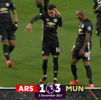 린가드는 지난 2017년 12월 맨유 유니폼을 입고, 에미레이츠 스타디움에서 골을 넣고 승리를 이끌었다. 맨유는 이후 9년간 아스널 원정에서 승리하지 못했는데, 이날 쿠냐의 결승골에 힘입어 징크스를 깬 것. 공교롭게도 두 선수의 세리머니는 비슷했다. 당시 린가드는 팔을 움직이며 춤을 추는 듯한 특유의 흥겨운 세리머니를 펼쳤는데, 쿠냐 역시 비슷하게 팔을 들고 다리를 움직이며 춤을 추는 듯한 세리머니를 펼친 것.