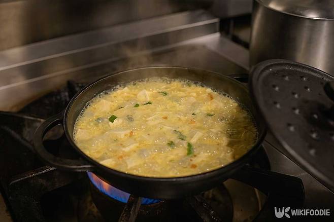 순두부 계란탕에서 가장 중요한 건 계란 넣는 타이밍이다. 물이 끓기 시작할 때 계란물을 천천히 붓고 절대 저어선 안 된다. 그대로 두면 계란이 몽글몽글하게 익는다. 중간에 젓게 되면 국물이 탁해지고 계란이 뭉치지 않아 식감이 흐트러진다. 겉이 익기 시작할 때 숟가락으로 서너 번만 가볍게 저어주면 충분하다. 이후 약불로 줄여 뚜껑을 덮고 3분 정도 더 끓이면 완성이다.