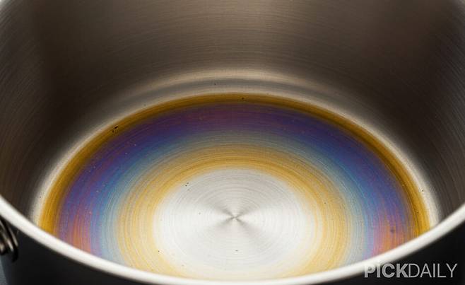 스테인리스 제품을 오래 쓰다 보면 표면에 무지개빛 얼룩이 생기는 경우가 있다. 이는 금속이 열에 오래 노출되면서 산화막이 형성되어 나타나는 현상으로, 아무리 세제를 써도 잘 지워지지 않는다. 이럴 때는 산 성분이 있는 식초가 도움이 된다.