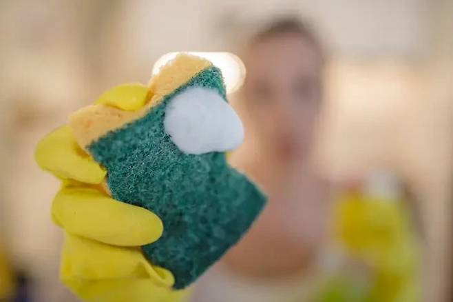 아크릴이나 면으로 만든 수세미는 조금 더 부드러운 방식이 필요한데요. 베이킹소다, 식초, 따뜻한 물을 1:1:1 비율로 섞은 용액에 수세미를 담가 부드럽게 주물러 주면 자연 친화적인 소독이 가능합니다. 이때 비닐봉지를 활용하면 편리합니다.