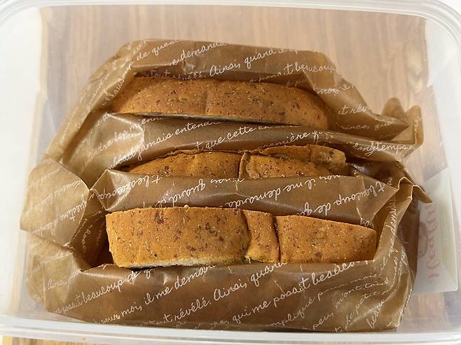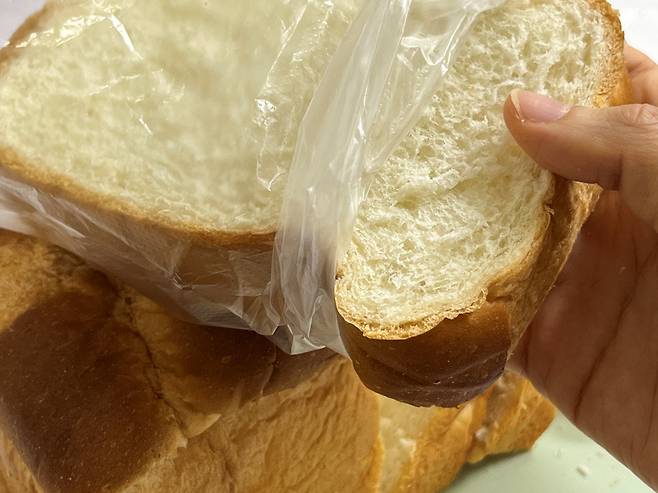 식빵이 여러 개 든 봉지째로 얼려버리면 식빵 사이가 서로 달라붙습니다. 해동할 때 한 장씩 분리하기 어렵고 찢어지거나 형태가 망가질 수 있습니다.