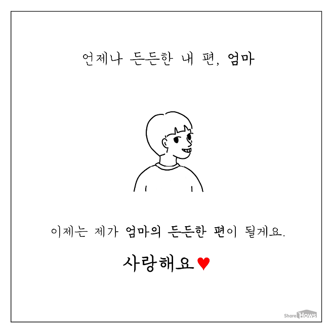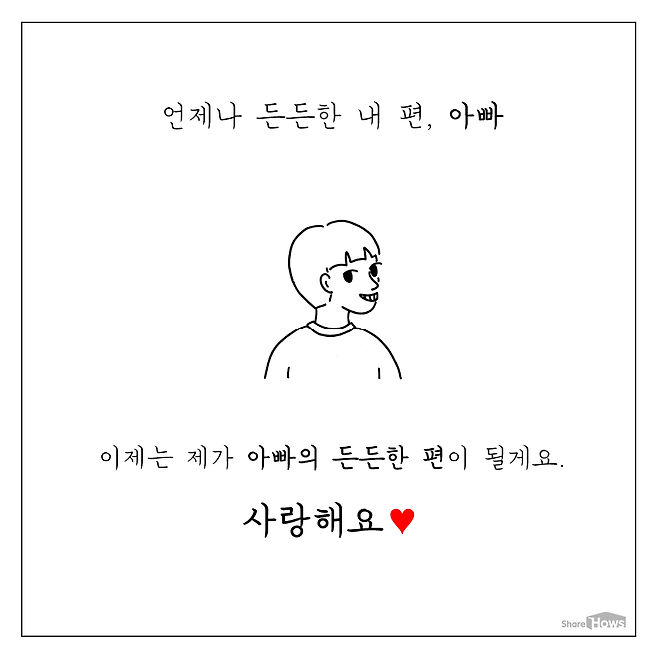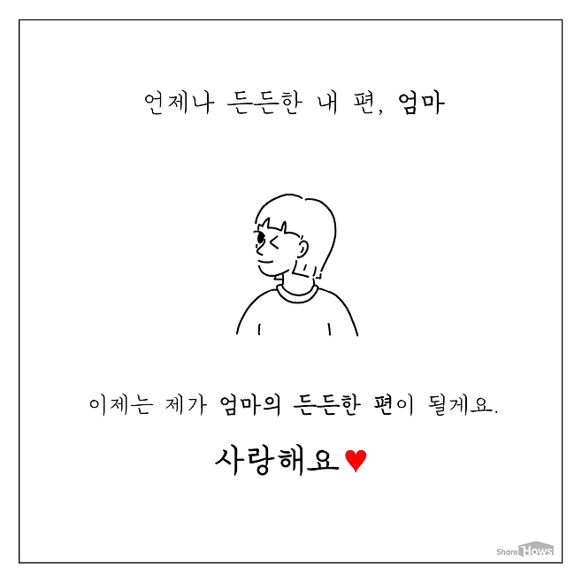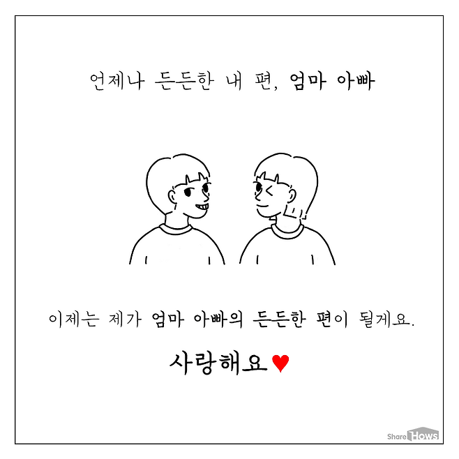 항상 내 편이 되어 주는 부모님께 듬직한 말 한마디, 저도 항상 엄마 아빠 편입니다!