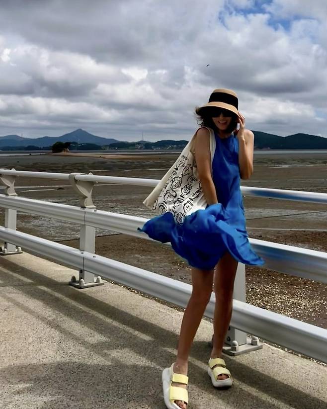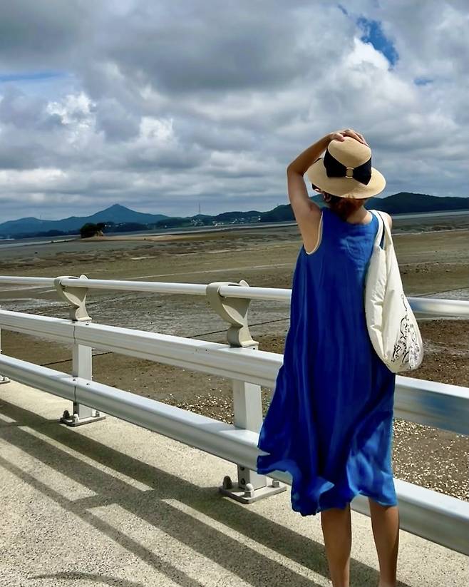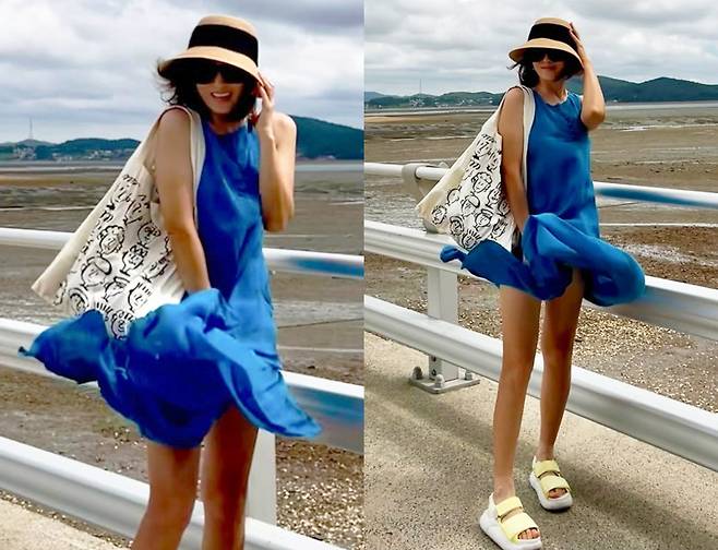 배우 김선아가 여름 바다보다 더 시원한 블루 원피스로 눈길을 사로잡았습니다.
