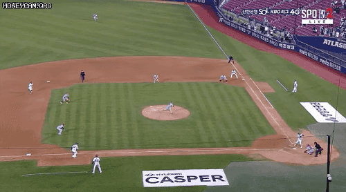 오태곤이 타구를 원바운드로 잡았지만 상황파악이 되지 않았던 1루 주자 안재석과 2루 주자 정수빈. 포스 플레이 상황이라 주자가 모두 이동해야 했지만 그 자리에서 정지. 이때 박성한이 2루 주자 정수빈을 태그, 2루 베이스를 밟으며 1루 주자 안재석 포스 아웃으로 병살타가 됐습니다. 만약 순서를 바꿔서 2루 베이스부터 밟고 정수빈을 태그했다면 3루 주자 김재호의 득점이 인정되는 상황이었는데 침착한 수비도 돋보였습니다.