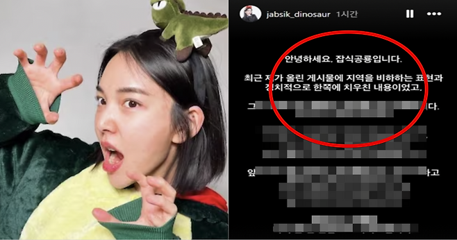 전라도 지역을 비하하는 발언으로 논란에 휩싸였던 유튜버 '잡식공룡'이 결국 SNS 계정을 모두 비공개 또는 삭제하고 온라인상에서 자취를 감췄습니다. 사과문 게시와 기부 사실 공개에도 불구하고 여론은 수그러들지 않았고, 유튜브와 인스타그램, 틱톡 계정까지 폐쇄하면서 사실상 잠적한 상태입니다. 이에 따라 잡식공룡의 최근 행보와 대응 태도에 대한 비판 여론이 더욱 거세지고 있습니다.