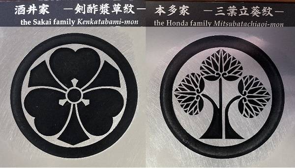 | ▲ 히메지성은 사카이 가문과 혼다 가문이 깊이 관련되어 있다고 하여 두 가문 장식이 꾸며져 있기도 합니다. ‘괭이밥’과 ?‘세잎 접시꽃’을 모티프로 만들어졌습니다.? |