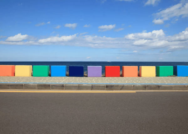 제주도 내에서도 가장 눈에 띄는 드라이브 코스 중 하나인 도두 무지개 해안도로는 색색의 방호벽이 길을 따라 이어지며 시각적인 즐거움을 더해주는 명소입니다. 차를 타고 지나는 동안 무지개처럼 이어진 이 도로는 바다의 파란색과 대비되어 마치 동화 속 세상에 들어온 듯한 느낌을 주는데요. 운전자뿐 아니라 동승자에게도 눈이 즐거운 풍경입니다.