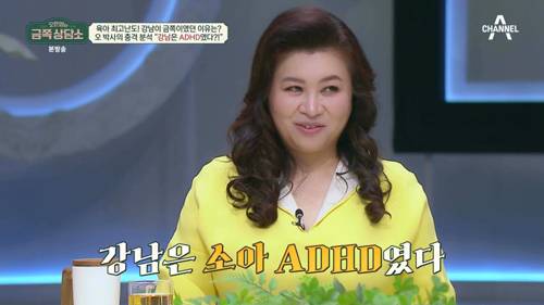 이를 들은 오은영은 "강남 씨는 어릴 때는 소아 ADHD였다. 주의력 결핍 과잉행동 아동. 어린 나이엔 주의력과 행동 조절이 미숙한 것이 당연한 일이다. 그런데 성장하면서 나이에 맞게 조절 능력이 생긴다. 근데 ADHD는 딱 이 부분, 자기 조절 능력. 이 안에는 생각, 행동, 충동, 감정 조절이 다 들어가는데 나이에 비해 자기 조절 능력이 미숙한 사람을 ADHD라고 하는 거다"라고 알렸다.