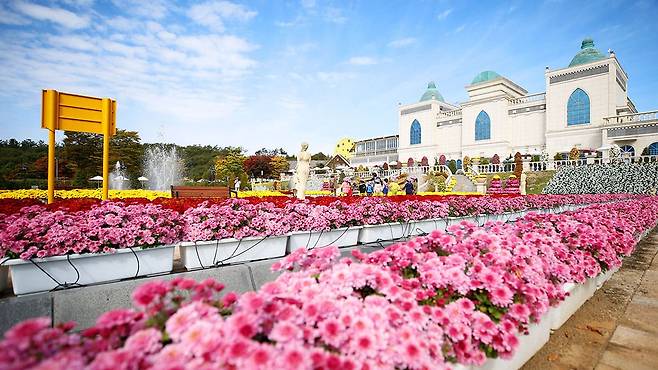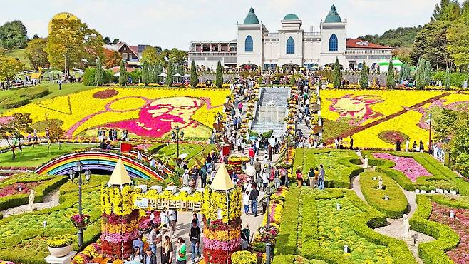 전북특별자치도 임실군 성수면 도인2길 50에 위치한 임실치즈테마파크는 매년 가을이면 천만송이 국화가 만개해 환상적인 꽃길을 선사한다.