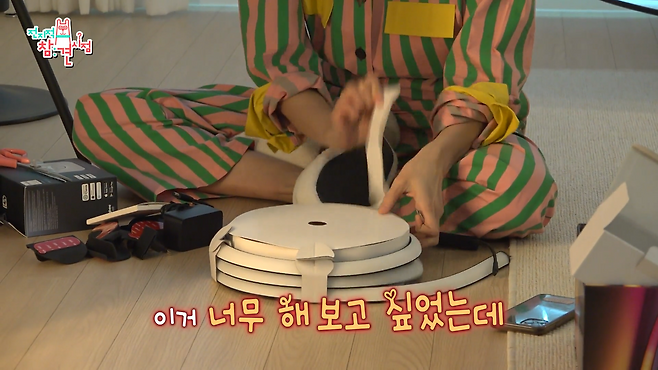 택배로 받은 물건들을 하나하나 사용해보고 있는 한보름!!