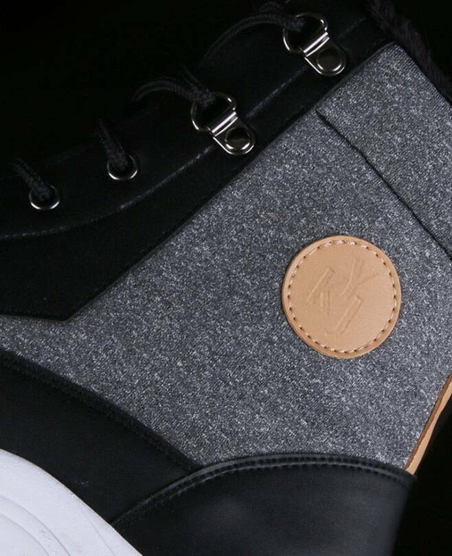 발목에는 가죽 패치에 로고를 더하여