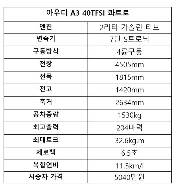아우디코리아가 올해 초 출시한 컴팩트 세단 A3를 시승했다. 오늘 만난 모델은 기존 A3와 다르다. A3는 폭스바겐 그룹의 MQB플랫폼을 기반으로 한 전륜구동 세단이다. 폭스바겐 골프와 형제차다. 폭스바겐 골프는 해치백의 교과서로서 벌써 8.5세대 모델이 올해 초 국내에 나왔다. 이름만 들어도 누구나 인정할 만큼 기본기가 탄탄하며 브랜드 인지도 또한 높다.