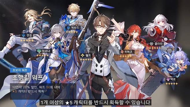 50회 한정으로 5성 캐릭터를 확정 획득할 수 있는 '초행길 워프'도 진행됩니다. 단차가 불가능한 뽑기지만, 별의 궤도 티켓으로 뽑을 때는 20% 할인이 적용돼 40장의 티켓으로 50회 뽑기가 가능한 구조입니다. 파티의 기반이 될 첫 5성 캐릭터를 얻는 첫 50회 뽑기까지 걸리는 시간이 어느 정도일지는 출시 후에 명확해지겠지만, 일단 출시된 날부터 게임을 즐겨야 유리하다는 건 확실합니다.