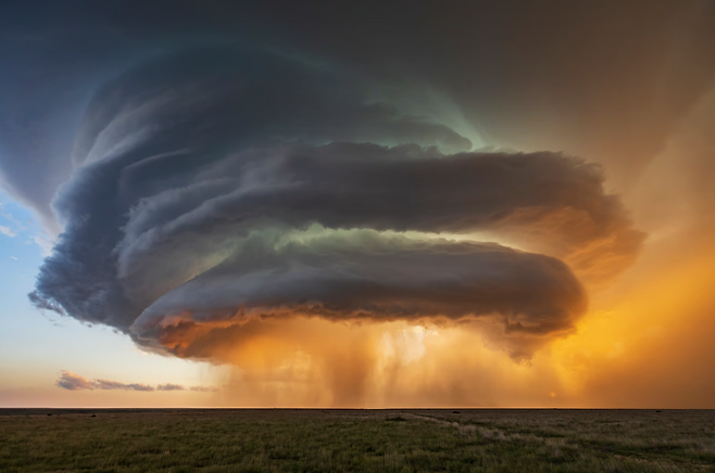 슈퍼컴퓨터 시뮬레이션 결과 머지않은 미래에 중심 기압 800헥토파스칼 대의 초대형 태풍 발생 가능성이 제기되었다.