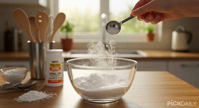 구연산은 산성 성분으로, 물때나 비누 찌꺼기처럼 알칼리성 오염에 효과적이다. 샤워기, 수전, 세면대 등에 생긴 하얀 석회질 물때를 제거할 때 좋으며, 냄새 제거에도 도움이 된다. 분말을 따뜻한 물에 녹여 스프레이 형태로 만들어 사용하면 효과가 높다.