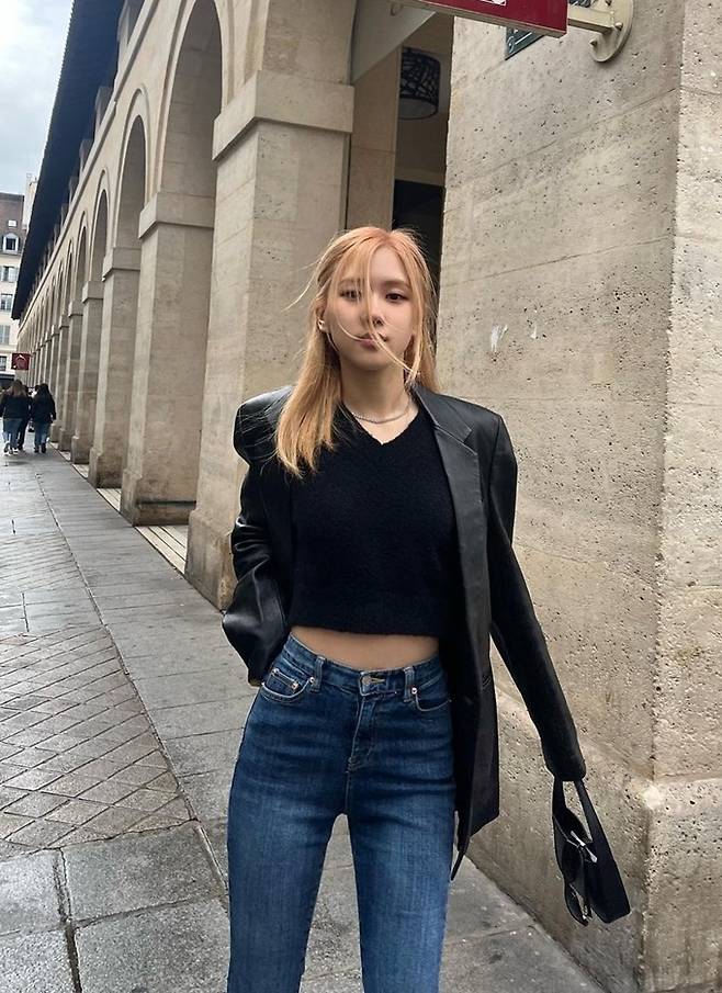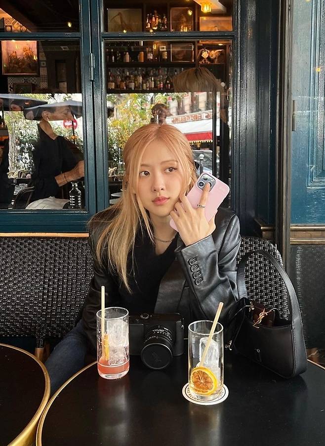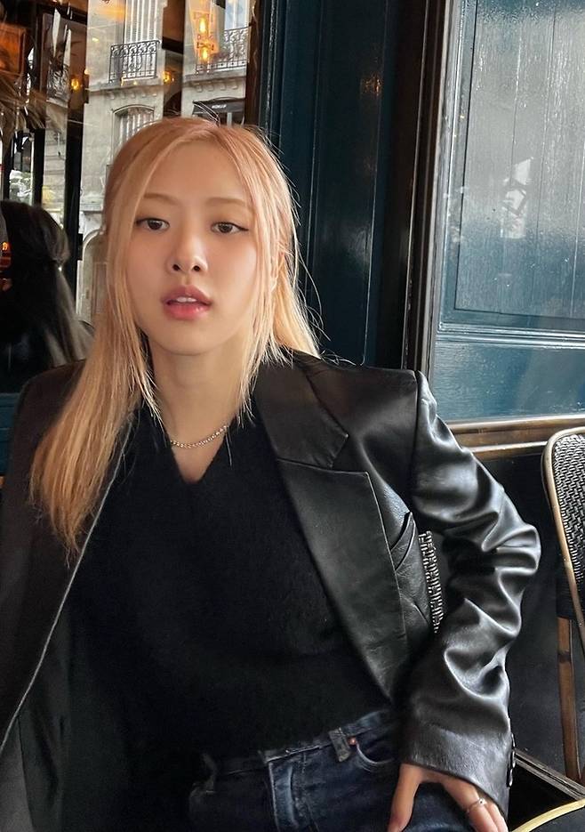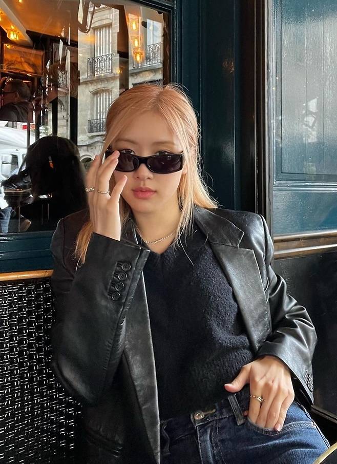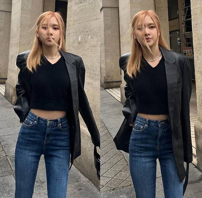 공개한 사진에서 로제는 금발 헤어에 데님 팬츠와 배가 살짝 드러난 크롭 블랙 이너에 오버핏 블랙 가죽 재킷으로 파리지앵도 울고 갈 시크하면서도 멋스러운 외출룩을 완성했다.