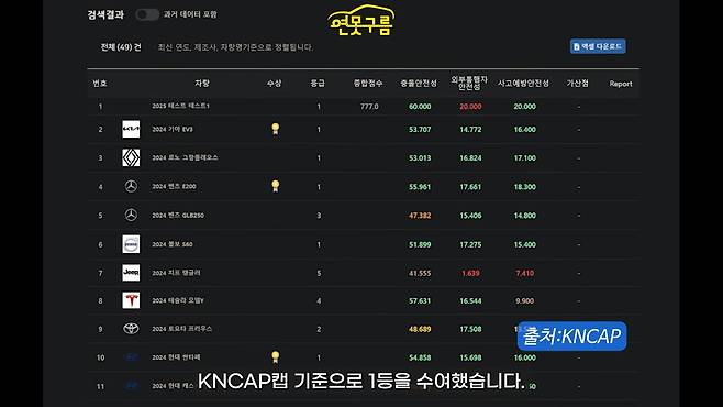더 세부적인 평가 자료를 확인하고 싶은 소비자들은 KNCAP.ORG에 직접 접속하여 자료들을 꼼꼼하게 살펴볼 수 있다. 특히 어린아이가 있는 경우 2열 승객 부분과 측면 충돌 테스트 등은 차량 선택 시 중요한 고려사항이 될 것으로 보인다.