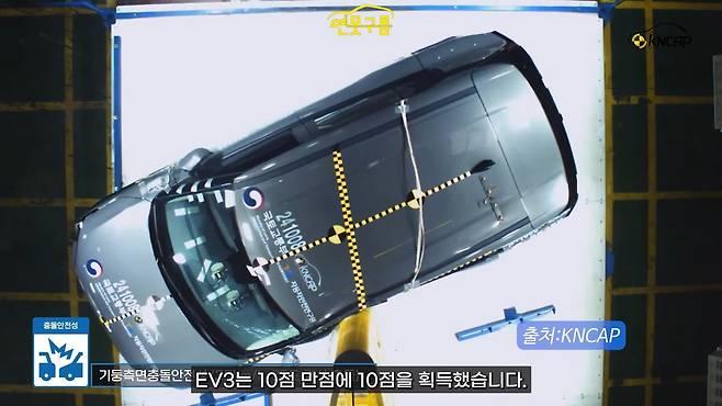 특히 주목할 만한 성과는 측면 충돌 안전성에서 나왔다. 60km 속도로 1400kg 이동벽(베리어)과 90도 직각 측면 충돌 테스트에서 EV3는 10점 만점에 10점을 획득했다. 1열에는 성인 남성 더미가, 2열에는 6세와 10세 어린아이 더미를 통해 테스트를 진행한 결과다. 소형 SUV를 고려했을 때 측면 충돌 안전성에서 만점을 받은 것은 높이 평가할 만하다.