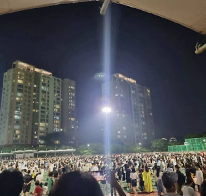 손흥민은 지난 5일 저녁 경기도 용인시 수지체육공원에 축구를 하기 위해 나타났다. 그의 옆에는 국가대표팀 동료인 골키퍼 김승규도 있었다. 손흥민이 나타나자 그를 보기 위해 2000명이 넘는 사람들이 몰려 경찰과 소방 인력까지 투입됐다.