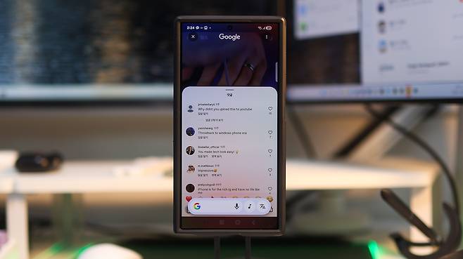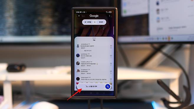 이번 One UI 8 업데이트에서 '서클 투 서치'가 완전히 새로워졌습니다. 번역을 켜기 위한 설정이나 옵션을 찾을 필요가 전혀 없어요. 그냥 가운데 번역 버튼을 한 번 누르면 끝이에요. 그다음부터는 스크롤을 내릴 때마다 새로운 문장이 자동으로 번역됩니다. 영어 뉴스 기사를 읽어도, 외국 SNS 댓글을 둘러봐도, 화면만 움직이면 문장이 자연스럽게 한국어로 번역됩니다.