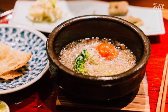 오반자이 전문점이다. 오반자이는 교토식 가정식, 한국식으로 이해하면 백반집 정도라고 보면 된다. 사장님은 고치현의 가정식을 선보인다고 하는데, 주재료는 시라스(멸치)다. 나는 4900엔짜리 코스를 주문했다. 시라스만 먹었을 때는 큰 임팩트가 없었으나, 마지막쯤에 먹은 시라스동(밥 위에 시라스와 버터를 올린 덮밥)과 감바스 알 아히요 같은 비주얼의 시라스 요리는 이번 여행에서 먹은 음식 중 가장 인상적이었다. 시라스동을 먹는 방법은 세 가지다. 처음에는 밥과 시라즈, 두 번째는 버터를 녹여서 함께, 세 번째는 기름 국물을 살짝 비벼서 먹으면 된다. 시라스의 감칠맛이 밀도 높게 응축되어 있었다. 바게트에 찍어 먹어도 훌륭했다.