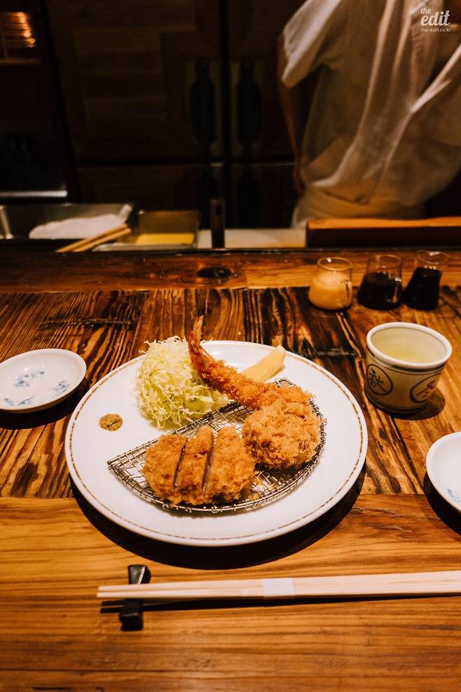 예약 없이, 웨이팅 없이 방문했다. 방문하면 예약하셨냐고 물어보는데 안 했다고 하면 조금 기다리라고 말한 후 자리를 안내해 준다. 아마 내가 운이 좋았던 것 아닐까 싶었다. 오픈 키친이라 눈앞에서 하얀색 조리복을 입은 셰프가 돈카츠를 만드는 장면을 하나하나 눈에 담을 수 있는데, 이게 하나의 공연처럼 느껴질 정도다. 셰프는 아무 말도 하지 않았지만 그의 동작은 ‘당신이 주문한 카츠를 만들기 위해 최선을 다하겠습니다’라고 말하는 것 같았다. 대충이 없다. 냉장고에서 돼지고기를 꺼내고 튀김가루를 정성스레 묻히고, 기름에 튀기는 과정에서 정확한 타이밍을 기다렸다가 한동작 한동작을 하는 듯했다. 히레카츠를 추천한다. 돈카츠 식당 하나만 추천한다면 이곳이다. 마찬가지로 미쉐린 빕구르망 식당이다.