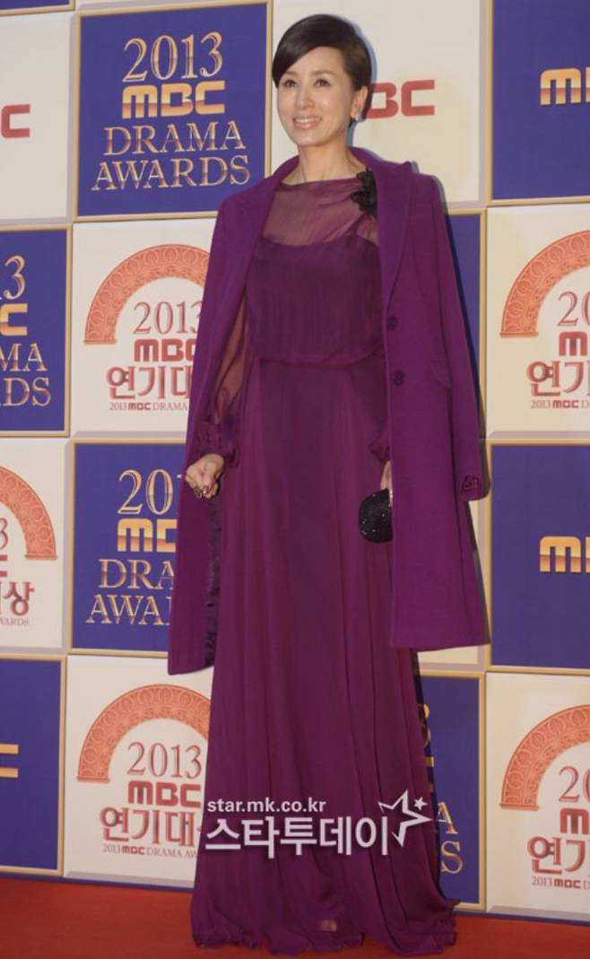 레드카펫 위에 선 이혜숙은 삶의 무게와 우아함을 동시에 보여주듯 보랏빛 시스루 드레스를 선택했다.
