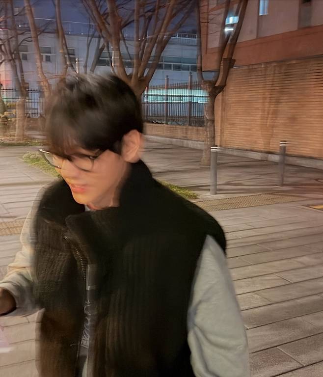 이와 함께 공개된 사진들에는 ‘뷔’의 소박한 일상이 가득 담겼다. 그는 지인과 함께 밤거리를 산책하며 길거리 음식인 붕어빵을 입에 물고 장난스러운 표정을 짓는가 하면, 어묵 국물을 마시며 겨울의 낭만을 즐기는 모습을 보였다. 특히 검은 코트에 뿔테 안경과 체크무늬 머플러를 매치한 세련된 ‘너드미’는 팬들의 마음을 설레게 했다.