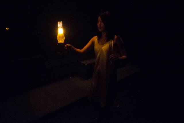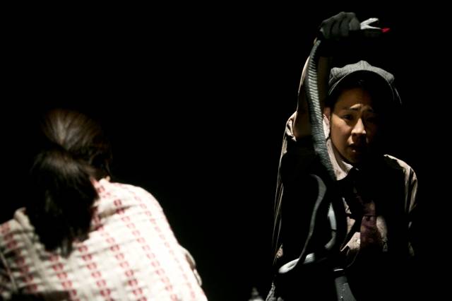 구순을 바라보는 김우옥 연출이 ‘늘푸른연극제’ 제7회 개막작으로 돌아왔다. <겹괴괴담>(마이클 커비 작, 김우옥 연출)은 마치 착시현상을 주는 구조주의 연극이다. 스토리는 약화되고구조에서 파생되는 현상들과 특징(음성, 공간, 이미지, 파편적인 장면, 소리, 공간, 오브제) 들만 인식하게 된다. 두 가지의 공포스러운(기담)이 연속적으로 겹을 이루며 진행되는 이야기로 흥미로운 연극적인 체험을 하게 된다. <겹괴기담>은 착시현상을 주는 듯한 효과를 내고 퍼즐게임 방식으로 구조를 인지하는 사유의 방식을 취하는 이 작품은 70년대 중반 뉴욕에서 초연됐다. 마이클 커비(Michael Kirby 1931~1997)의 구조주의 연출적 실험들이 언어와 스토리에 익숙한 관객들한테는 난해한 연극으로 인식되었다 무대 전경이 분리된 객석 사이로 마주 볼 수 없는 공간의 면으로 스크린처럼 투사되는 괴담(怪談)이 영화적 몽타주처럼 비연속적인 패턴으로 중첩해 보는 구조는 충격적인 실험들로 다가왔을 것이다.